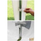Ez a parti sátor könnyedén összeállítható, teljesen horganyzott, korróziómentes acélból és körülbelül 500 g / m² súlyos PVC ponyvákból, robusztus rácsos belső anyagból készült.