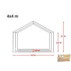 Ez a parti sátor könnyedén összeállítható, teljesen horganyzott, korróziómentes acélból és körülbelül 500 g / m² súlyos PVC ponyvákból, robusztus rácsos belső anyagból készült.